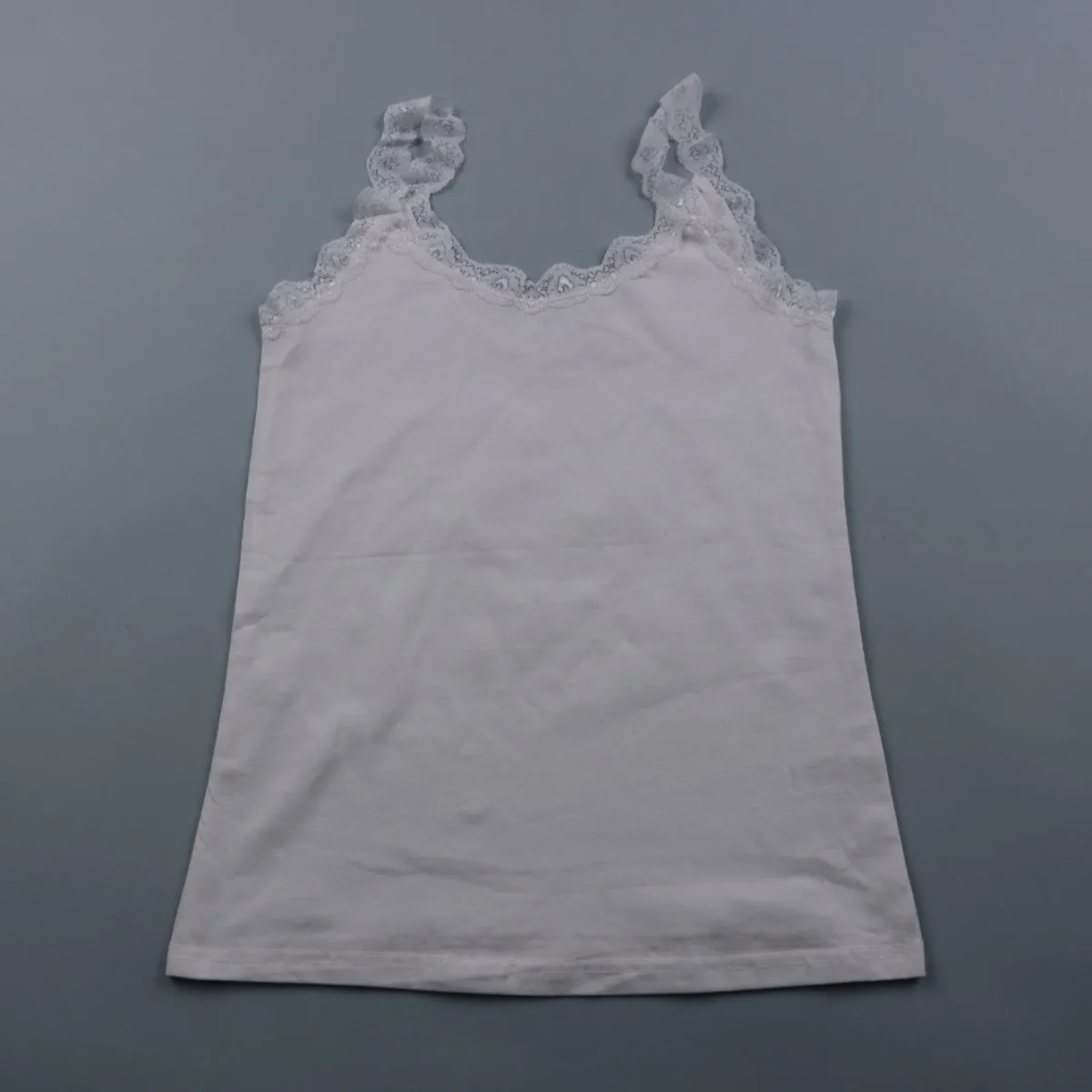 Белая майка George на тонких бретелях с кружевной отделкой по верху. Подойдёт как нижний слой под школьную форму или повседневную одежду. Хлопковая ткань с добавлением эластана хорошо тянется и комфортно сидит.