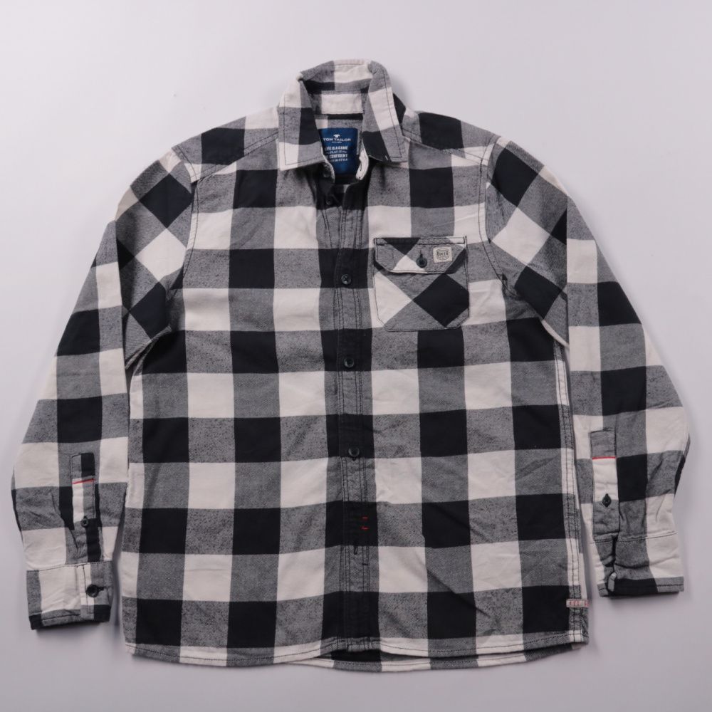 Рубашка Tom Tailor в крупную чёрно-белую клетку, с длинным рукавом и нагрудным карманом. Подойдёт для школы и прогулок в прохладную погоду, хорошо смотрится с джинсами и брюками. Натуральный хлопок дышит и легко стирается.