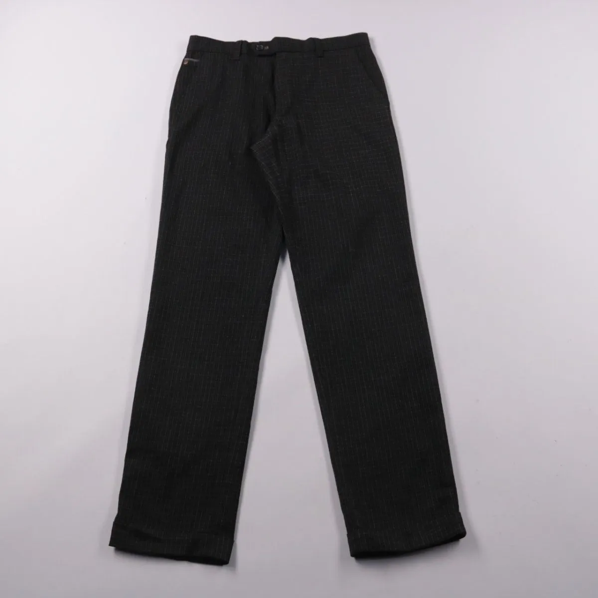 Мужские брюки Next в тёмном цвете с мелким клетчатым рисунком, прямого кроя. Подойдут для офиса и повседневной носки, хорошо сочетаются с рубашкой или джемпером. Практичный плюс — ткань со стрейчем, поэтому посадка комфортнее и меньше стесняет движения.