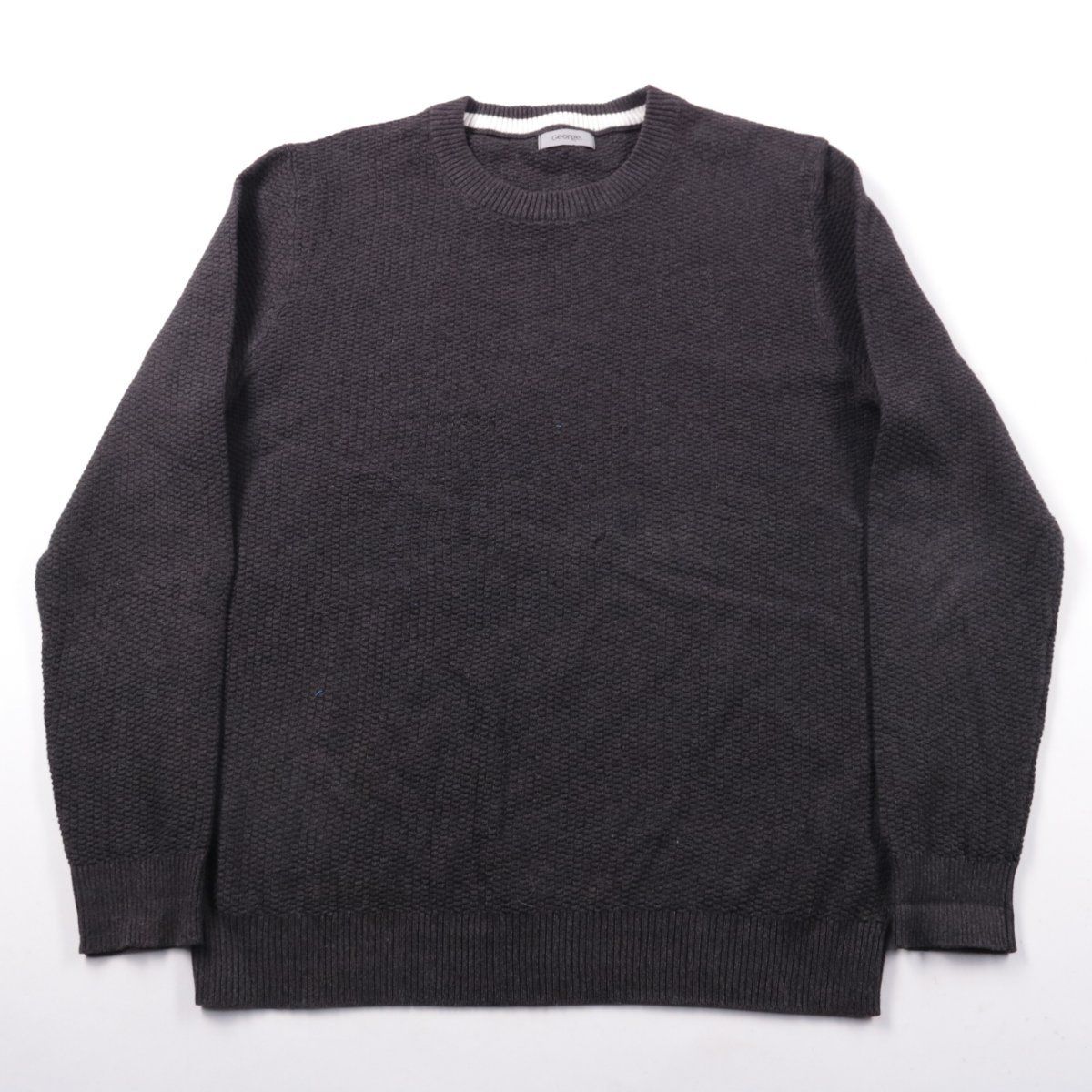 Мужской свитер George тёмно-серого/чёрного цвета с фактурной вязкой и круглым вырезом. Подойдёт для повседневной носки в прохладную погоду, хорошо смотрится с джинсами и брюками. Хлопковый материал комфортный и дышащий, легко ухаживать.