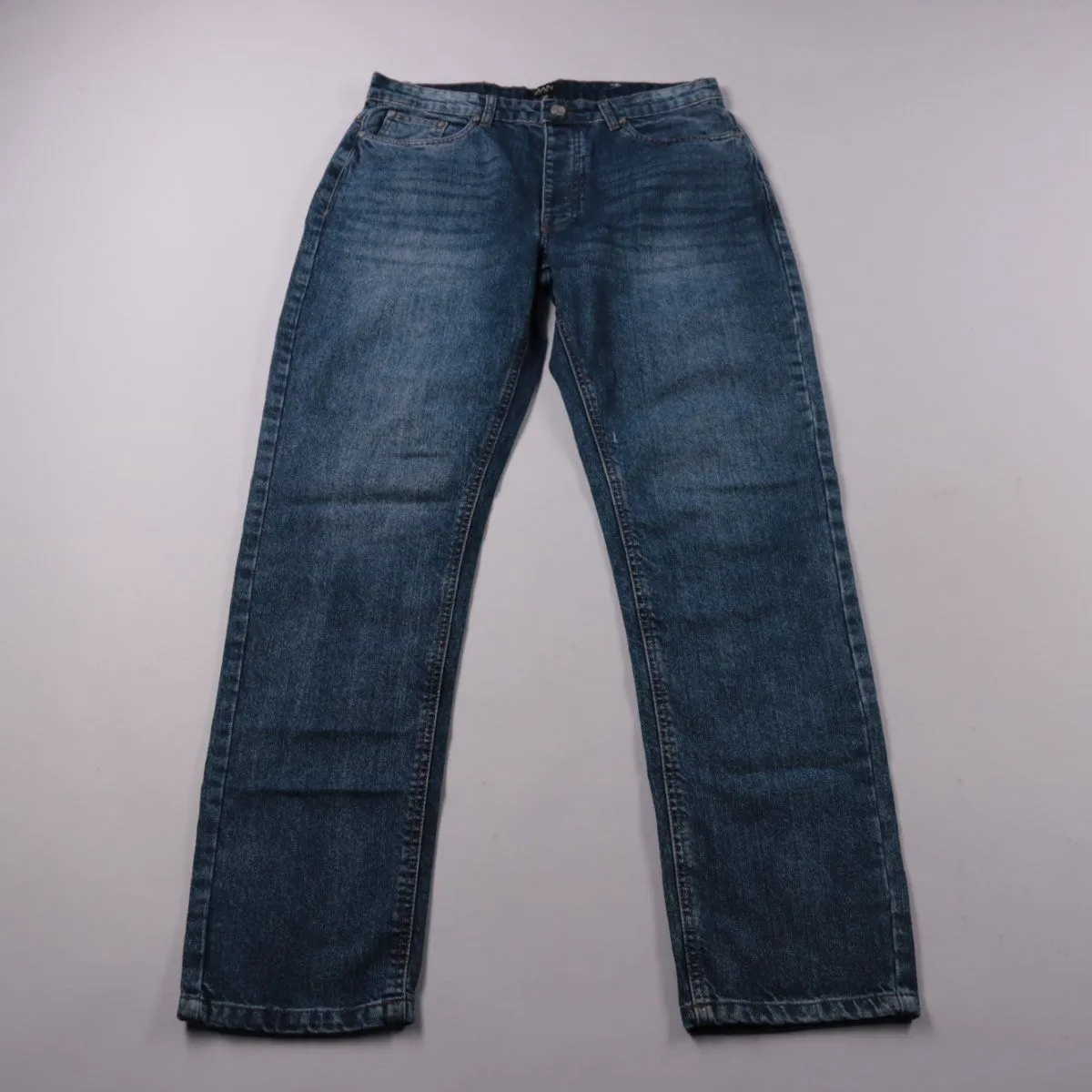 Мужские джинсы BoohooMAN из синего денима прямого кроя. Подойдут для повседневной носки и городских образов в любое время года. Плотный 100% хлопок хорошо держит форму и комфортен в носке.
