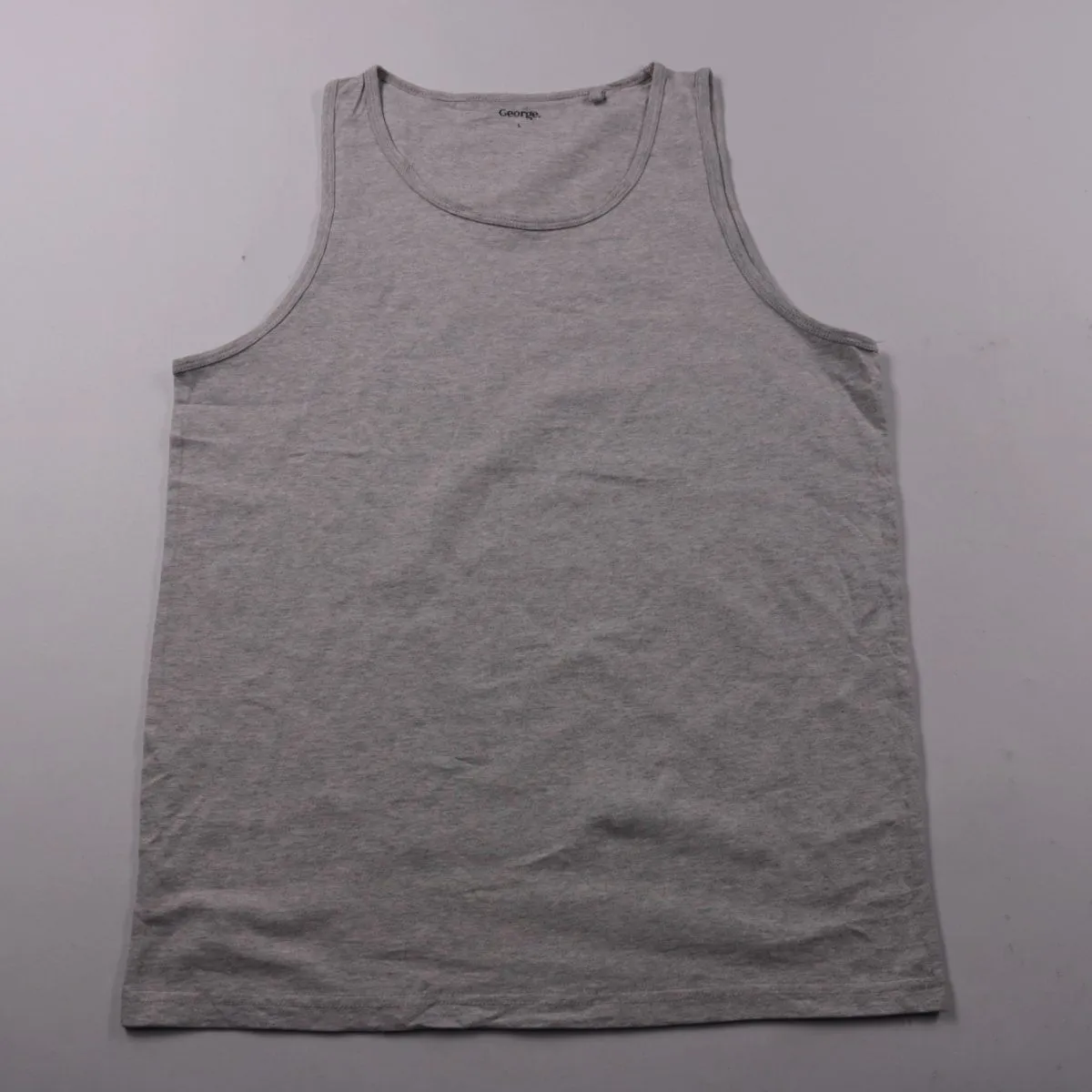 Мужская майка George серого меланжевого цвета, без принта. Подойдёт как базовый слой или для дома и тренировок в тёплое время. Натуральный хлопок хорошо дышит и комфортен в носке.