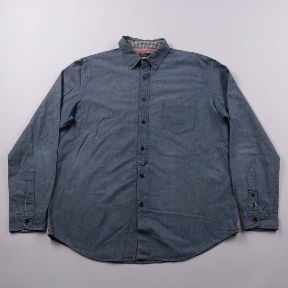 Мужская рубашка Zara Man из хлопка, выполнена в синем джинсовом стиле с нагрудным карманом и застёжкой на пуговицы. Подойдёт для повседневных образов на работу или прогулки, можно носить как самостоятельный верх или вторым слоем. Натуральный материал х...