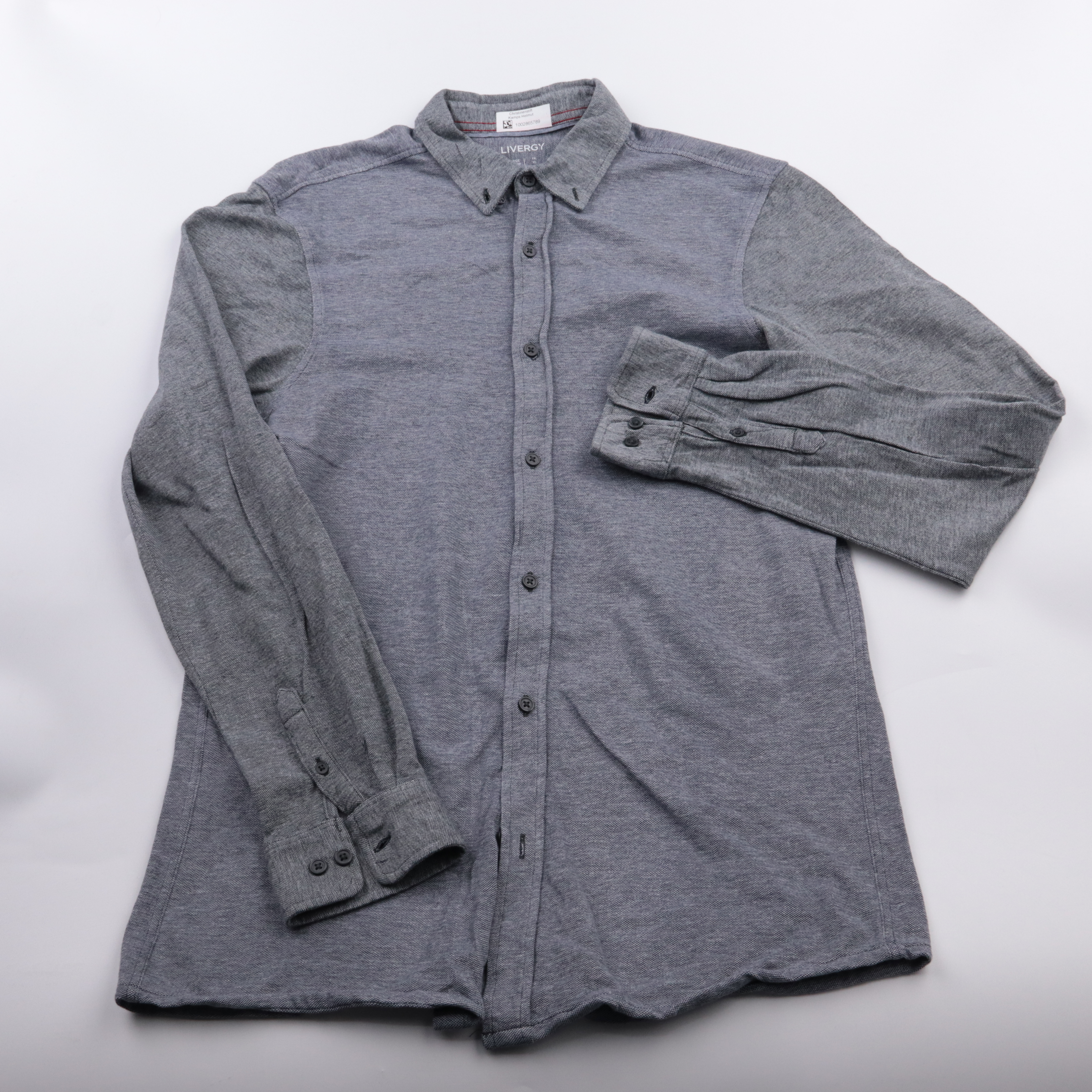 Мужская рубашка Livergy серого цвета из плотного трикотажного материала, на пуговицах, с длинным рукавом и манжетами. Подойдёт для офиса в стиле casual и на каждый день, хорошо сочетается с джинсами или брюками. Материал практичный и комфортный, не ско...
