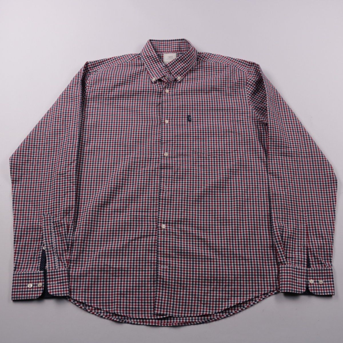 Мужская рубашка Next Tailoring Regular Fit в мелкую клетку (красный/синий/белый), с длинным рукавом и застёжкой на пуговицы. Подойдёт для офиса и повседневных образов, хорошо смотрится как самостоятельно, так и под пиджак. Практичный плюс — смесовая ткань (хлопок с полиэстером) меньше мнётся и проще в уходе.