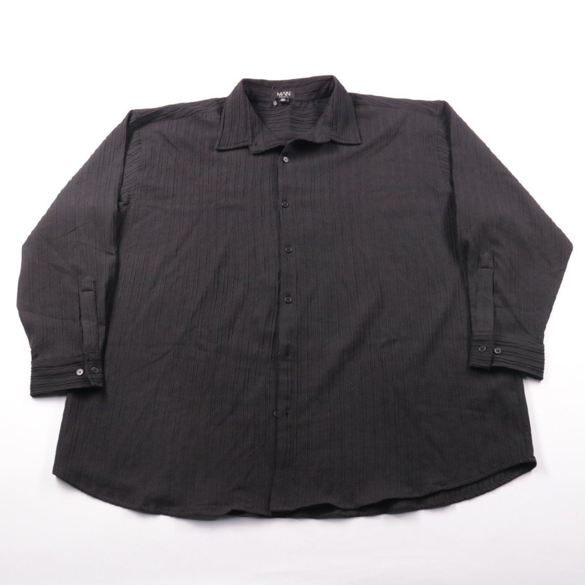 Мужская рубашка BoohooMAN чёрного цвета с фактурной тканью и классической застёжкой на пуговицы. Подойдёт для повседневных образов и офисного casual, хорошо смотрится как самостоятельный верх или вторым слоем поверх футболки. Материал из полиэстера почти не мнётся и быстро сохнет после стирки.