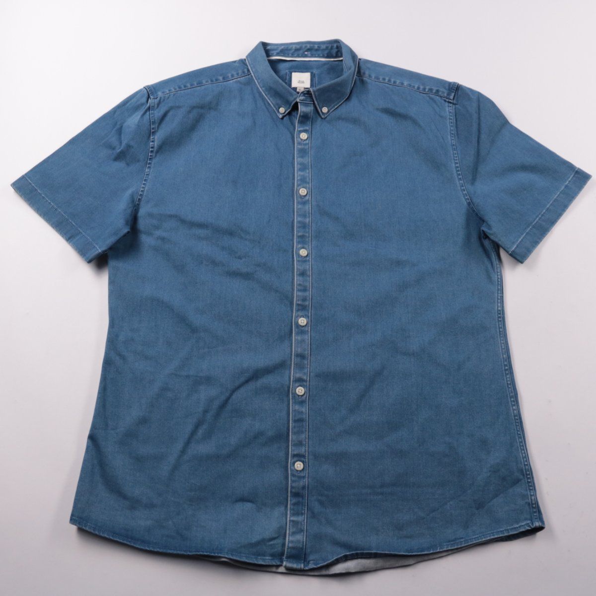 Мужская джинсовая рубашка River Island Muscle Fit с коротким рукавом и воротником на пуговицах. Подойдёт для повседневных образов летом или как второй слой в прохладную погоду. Плотный деним хорошо держит форму и практичен в носке.