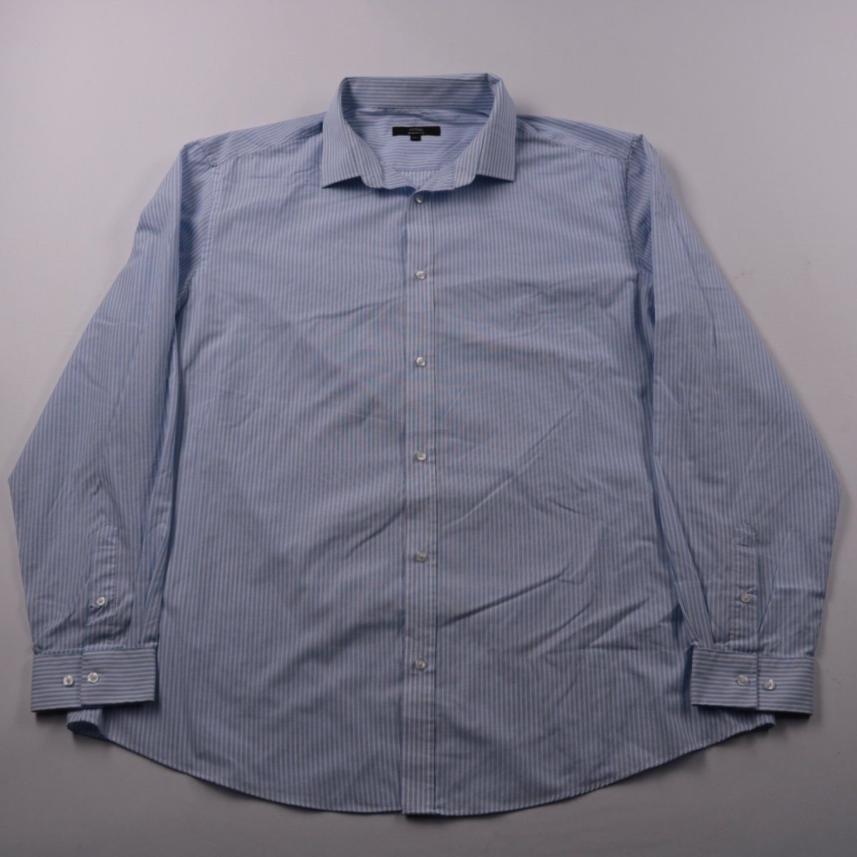Мужская рубашка George Regular Fit в голубую полоску, с длинным рукавом и классическим воротником. Подойдёт для офиса и повседневных образов, хорошо смотрится как с брюками, так и с джинсами. Практичный плюс — легко стирается и быстро сохнет благодаря смесовой ткани.