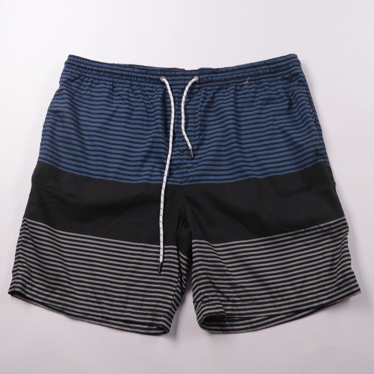 Мужские пляжные шорты Rivers в полоску, с эластичным поясом и шнурком. Подойдут для купания и отдыха у моря или бассейна, есть задний карман и сетчатая подкладка. Быстро сохнут и удобно регулируются по талии.