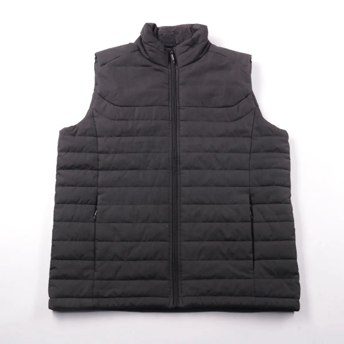 Утеплённый мужской жилет Stormtech на молнии, чёрного цвета, с высоким воротником-стойкой. Подойдёт для прогулок и поездок в прохладную погоду, удобно носить поверх худи или свитера. Лёгкий и компактный, не стесняет движения и быстро сохнет.