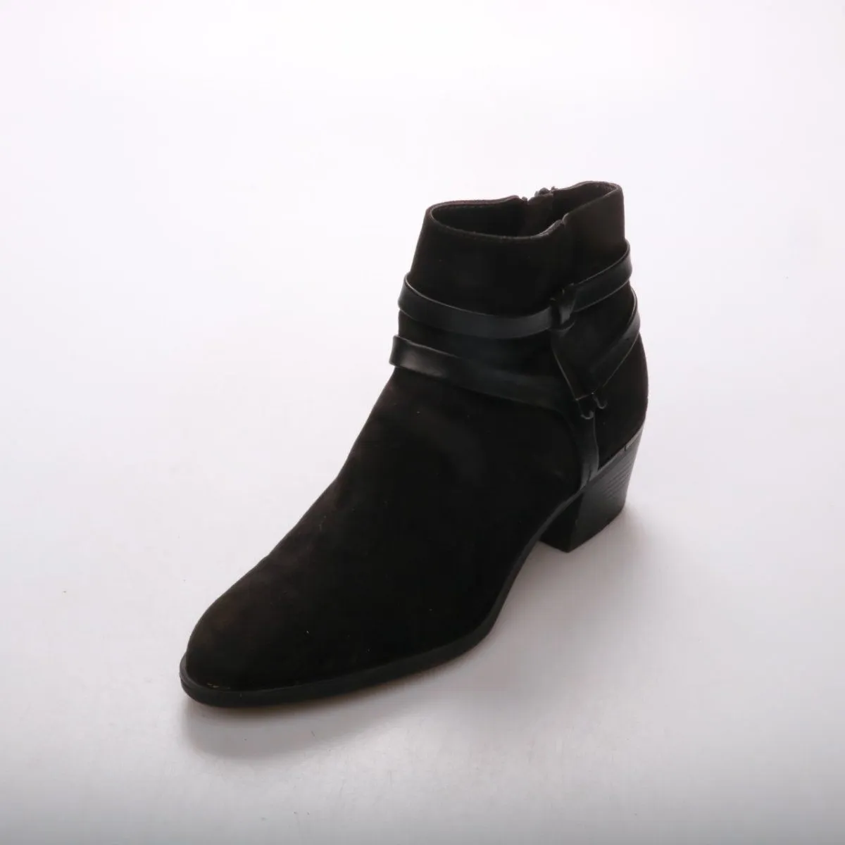 Женские ботильоны Esprit из чёрного материала под замшу, с декоративными ремешками и боковой молнией. Подойдут для повседневных образов в прохладную погоду, хорошо сочетаются с джинсами и платьями. Устойчивый каблук делает их удобными для длительной ходьбы.