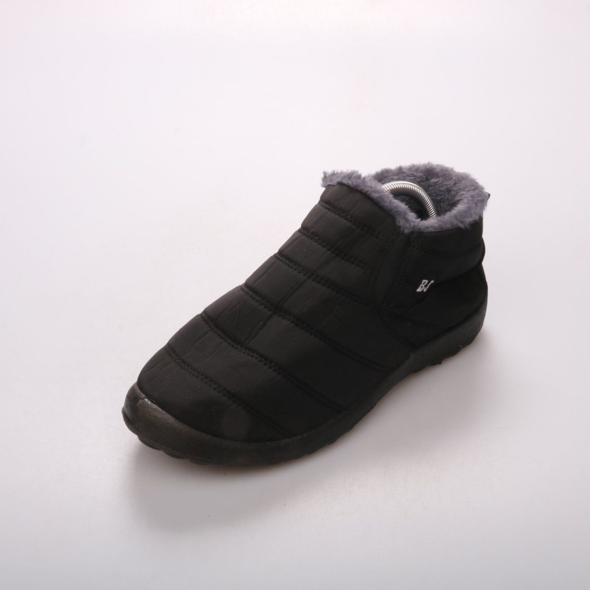 Утеплённые ботинки BJ из стёганого текстиля с мягкой меховой окантовкой. Подойдут для зимних прогулок и повседневной носки в городе в холодную погоду. Практичное преимущество — лёгкие и быстро надеваются, а рельефная подошва даёт лучшее сцепление.