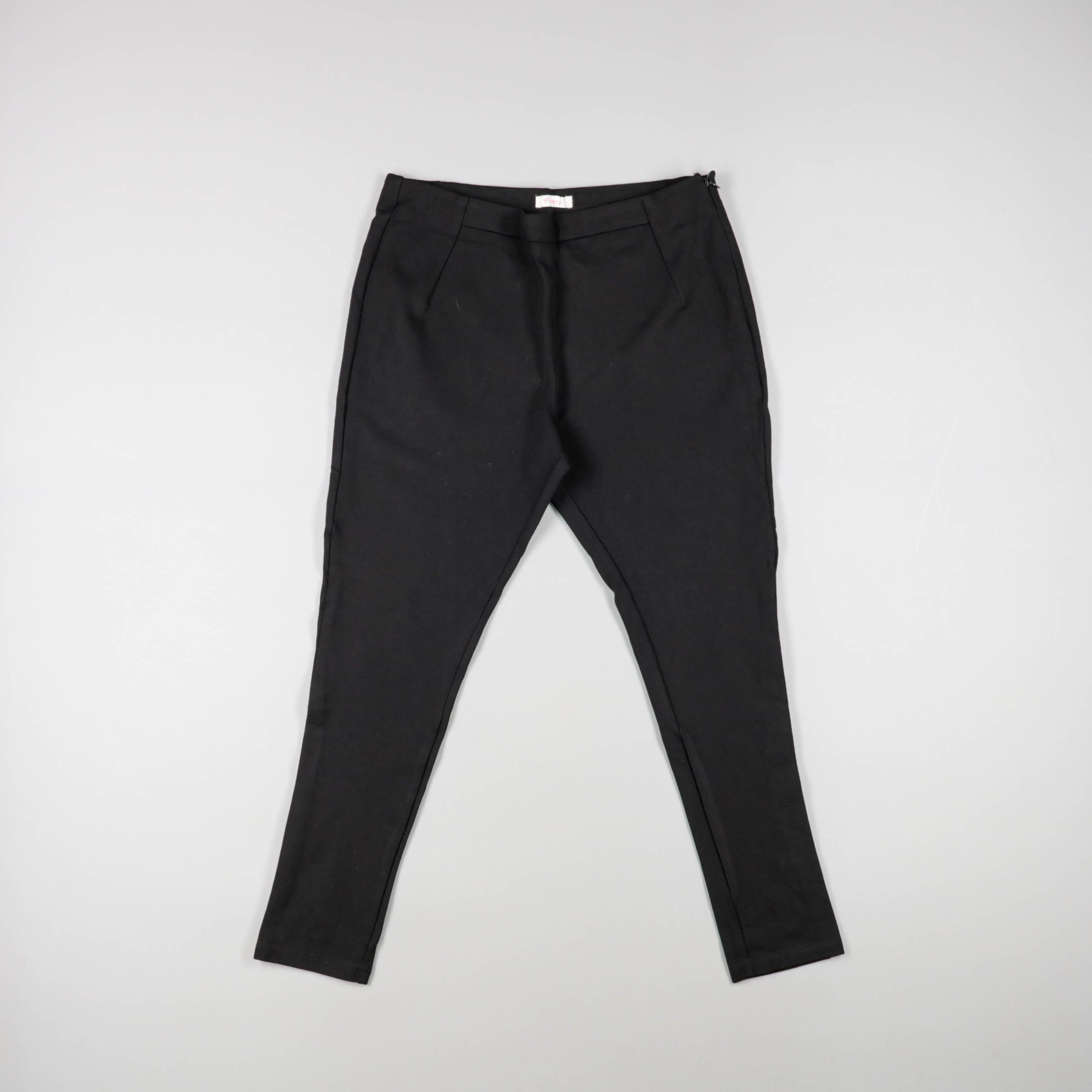 Женские зауженные брюки без явного бренда, базовый чёрный цвет и аккуратная посадка. Подойдут для офиса и повседневных образов с рубашкой или джемпером. Практичный плюс — легко сочетаются с любой обувью и верхом.