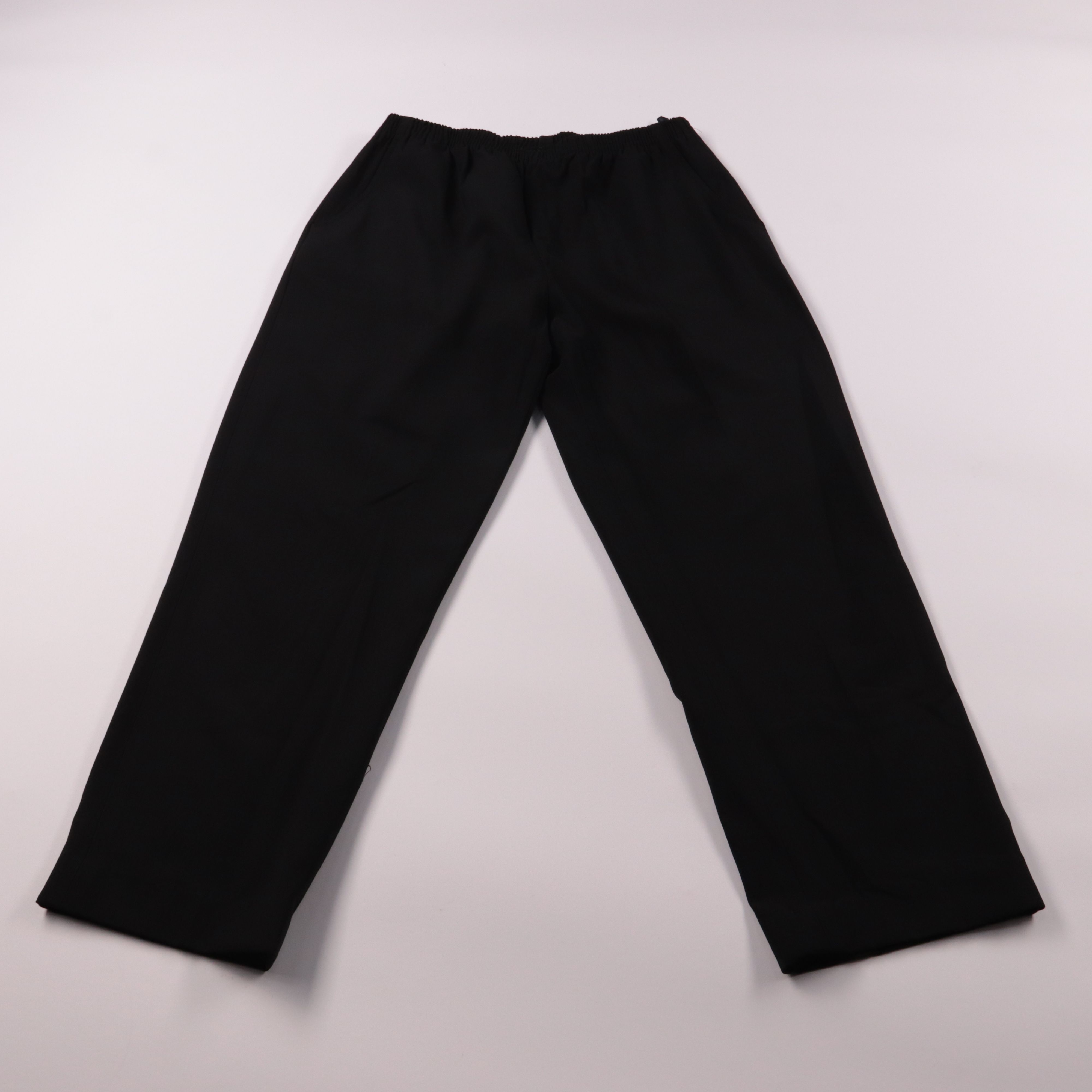 Чёрные брюки прямого кроя на эластичном поясе, без застёжки. Подойдут для повседневных образов и спокойного офисного дресс-кода, легко сочетаются с базовыми топами и жакетами. Резинка на талии делает посадку комфортной и удобной на весь день.