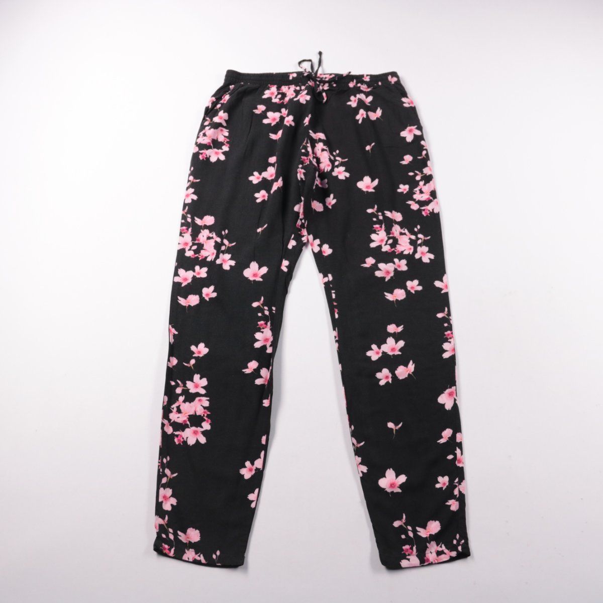 Женские брюки B.young из вискозы с чёрным фоном и розовым цветочным принтом, на эластичном поясе со шнурком. Подойдут для повседневных летних образов и отпуска, хорошо сочетаются с однотонными футболками и топами. Лёгкая ткань дышит и комфортно ощущается в жару.