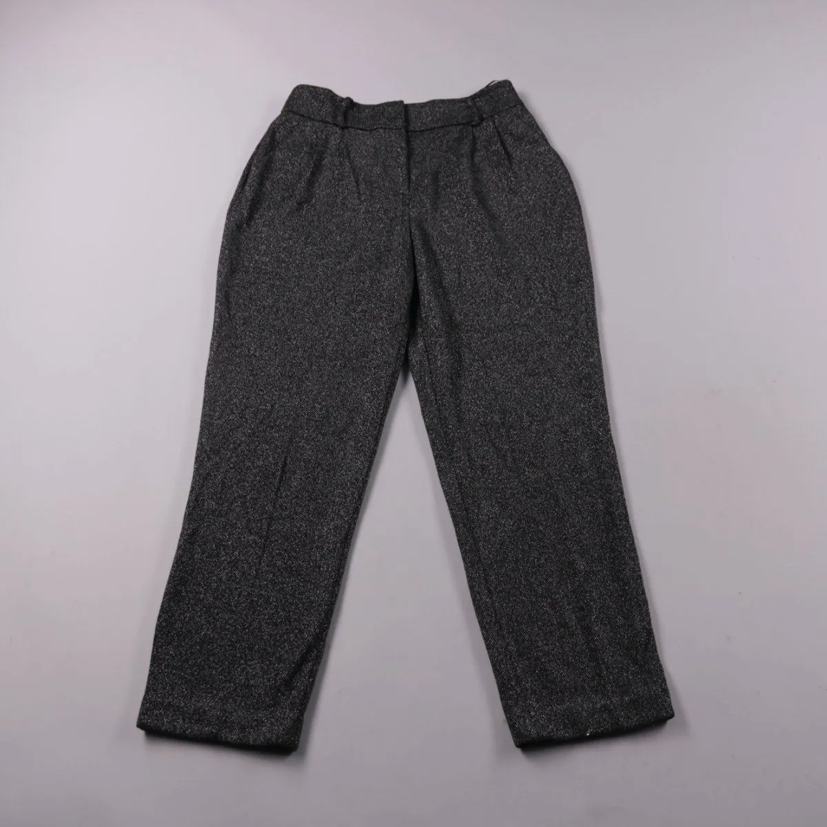 Женские брюки Primark прямого кроя из тёмно-серой ткани с лёгким блеском (металлизированная нить). Подойдут для офиса и повседневных образов благодаря спокойному цвету и лаконичному дизайну. Практичны тем, что легко сочетаются с базовыми топами и обувью.