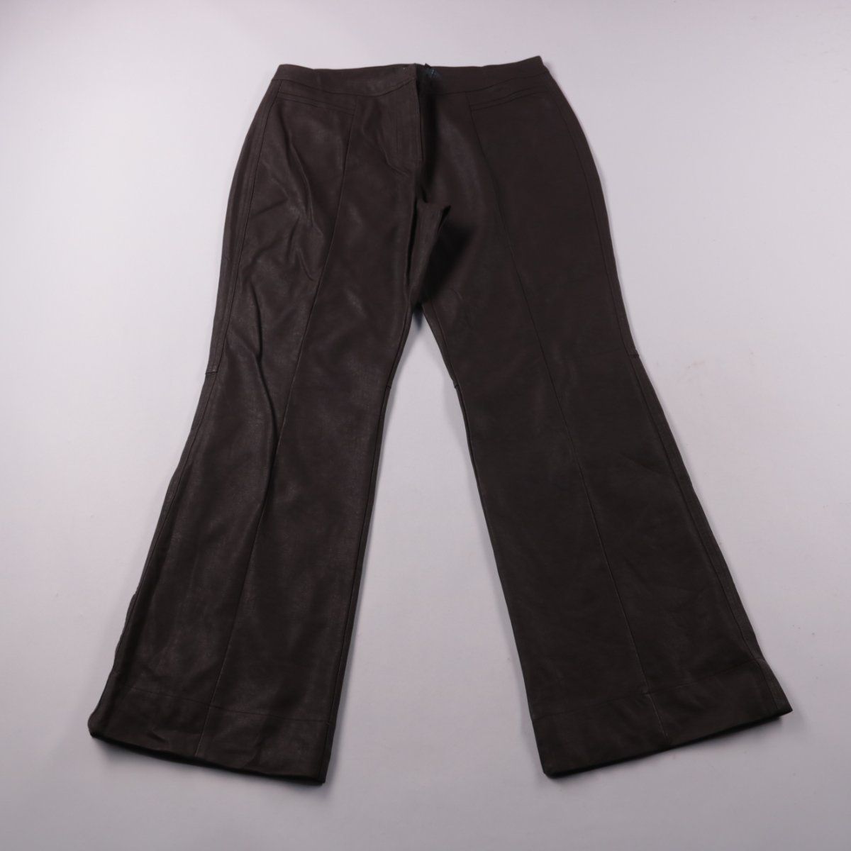 Женские брюки Next из экокожи с прямым кроем и легким расширением к низу. Подойдут для повседневных образов в прохладную погоду и на выход. Материал практичный в уходе и хорошо держит форму.