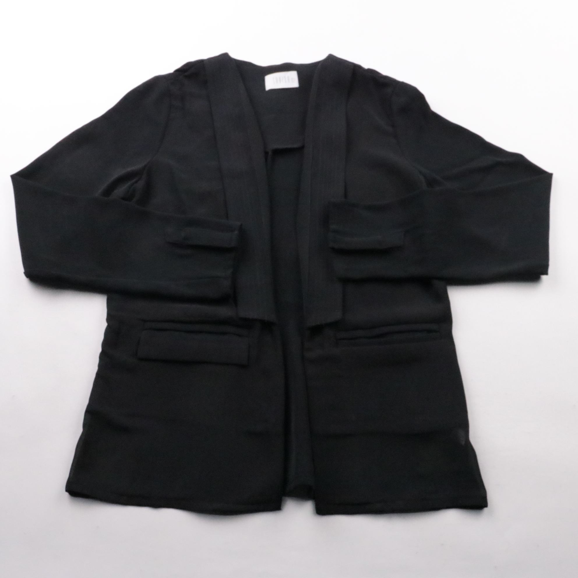 Женский чёрный пиджак Savidra прямого кроя с накладными клапанами карманов. Подойдёт для офиса и повседневных образов с джинсами или брюками. Практичный материал из полиэстера легко стирается и быстро сохнет.