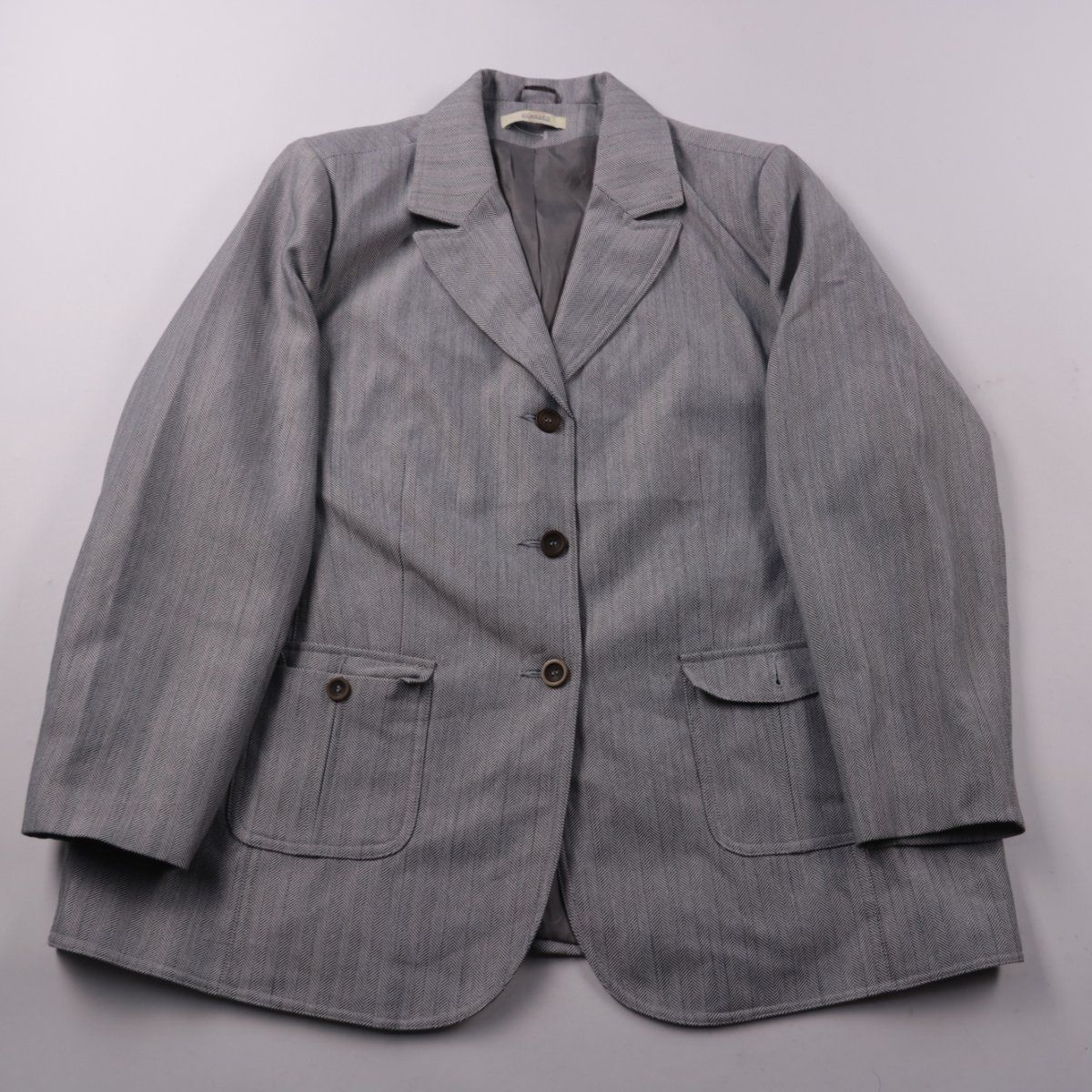 Женский серый пиджак Classics с классическими лацканами и застёжкой на пуговицы. Подойдёт для офиса и повседневных образов с брюками или юбкой. Материал практичный в уходе и держит форму.