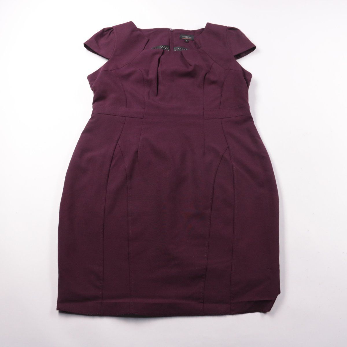 Платье New Look бордового цвета, приталенного кроя с коротким рукавом и вытачками по фигуре. Подойдёт для офиса, мероприятий и повседневных образов в прохладное время. Полиэстер практичен в уходе и меньше мнётся.