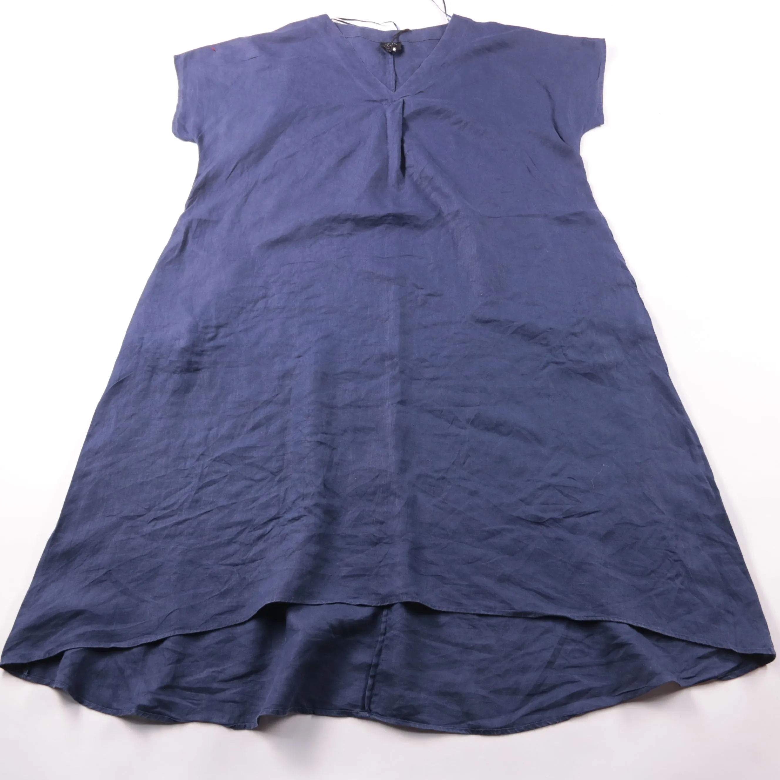 Повседневное платье John Lewis & Partners свободного А-силуэта, тёмно-синего цвета, с коротким рукавом и V-образным вырезом. Подойдёт для летних прогулок и офиса в расслабленном стиле. Лёгкая ткань комфортна в жару и легко сочетается с обувью на плоско...