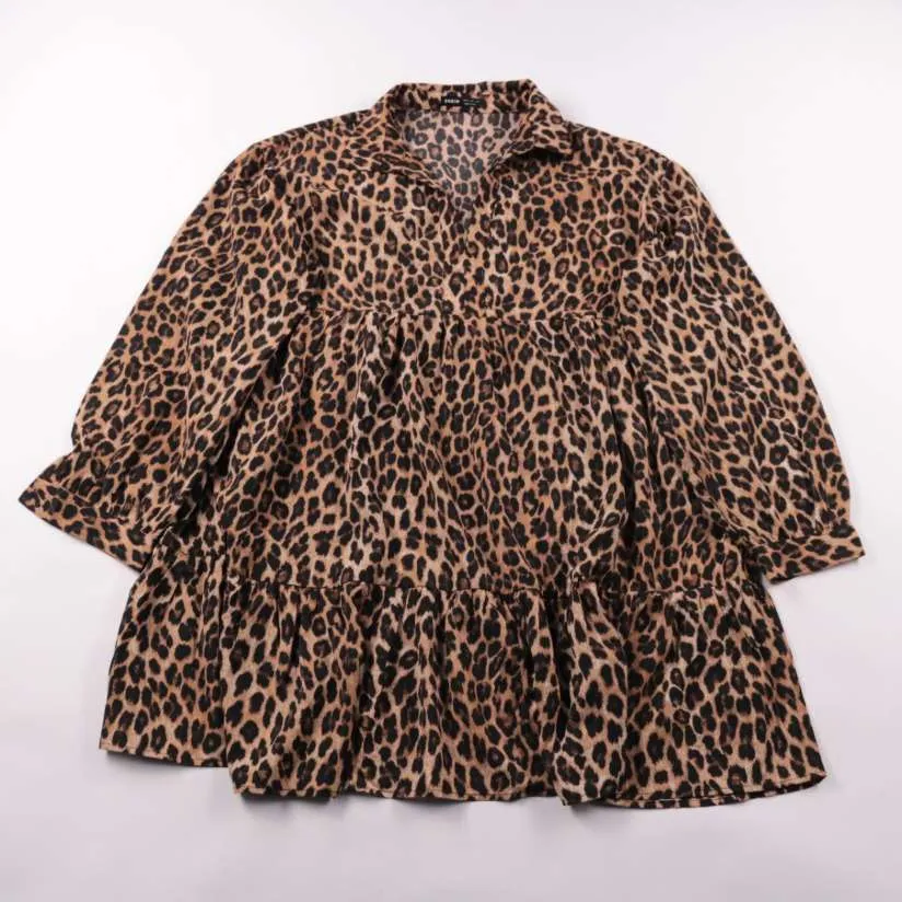 Повседневное платье SHEIN свободного кроя с леопардовым принтом, воротником и планкой на пуговицах. Подойдёт для прогулок и на каждый день в тёплую погоду, можно носить с ботинками или кедами. Практичный плюс — лёгкая ткань из полиэстера, быстро сохнет...