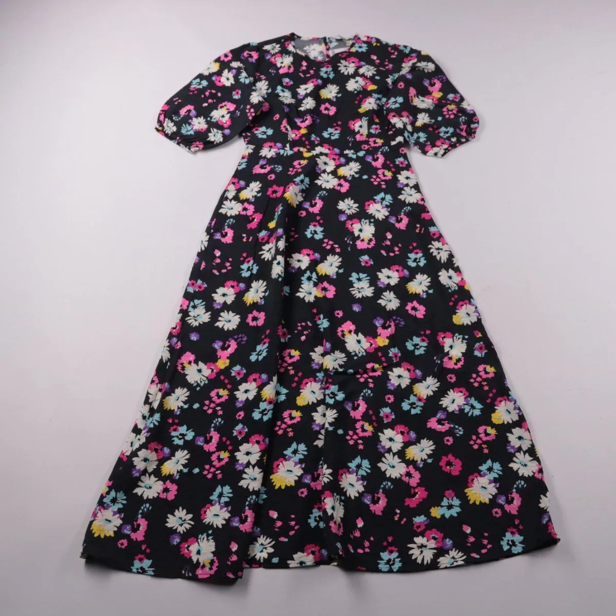Повседневное миди-платье ONLY с цветочным принтом на тёмно-синем фоне и короткими рукавами-фонариками. Подойдёт для прогулок и офиса в тёплую погоду благодаря лёгкой вискозной ткани. Практичный плюс — немнущийся материал и удобная длина миди.