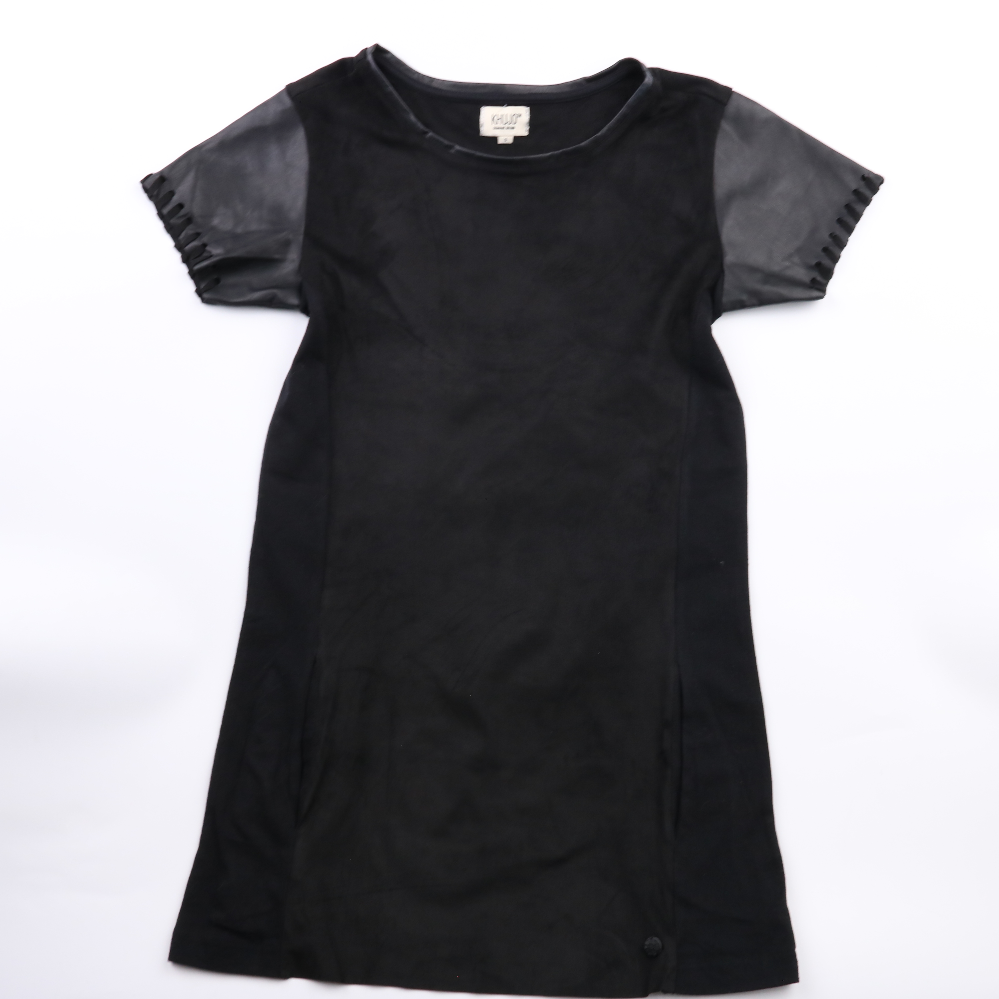 Черное платье Khujo прямого кроя с короткими рукавами из полупрозрачного материала и декоративной шнуровкой по краю. Подойдет для повседневных образов и вечерних выходов, легко сочетается с ботинками или туфлями. Практичный плюс — ткань почти не мнется...