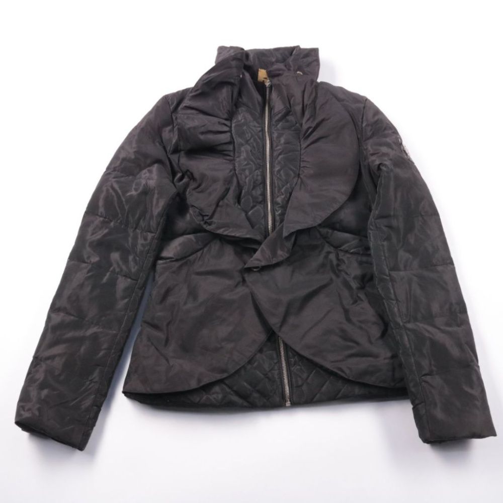 Стёганая женская куртка с асимметричной драпировкой спереди и застёжкой на молнию. Подойдёт для прохладной погоды в городе и на каждый день, легко сочетается с джинсами и платьями. Практичный плюс — лёгкая и тёплая за счёт пухового наполнителя.