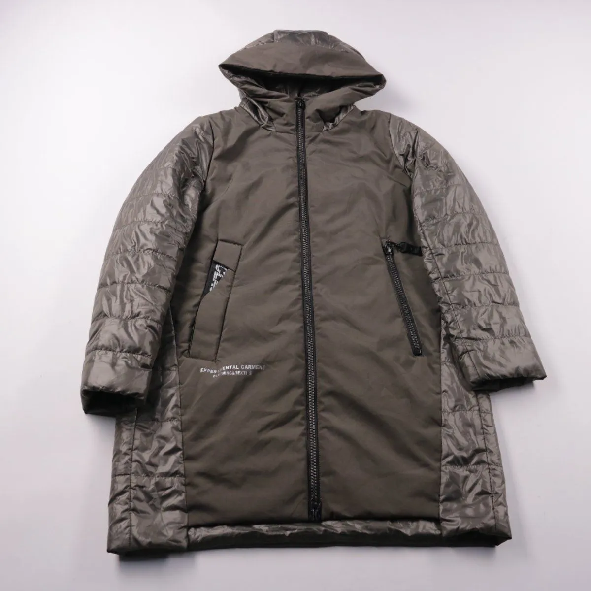 Женская утеплённая куртка Obralite с капюшоном и застёжкой на молнию, в практичном тёмно-сером (хаки) оттенке. Подойдёт для зимних прогулок и повседневной носки в городе, есть удобные карманы на молнии. Лёгкий синтетический утеплитель хорошо держит тепло и не требует сложного ухода.