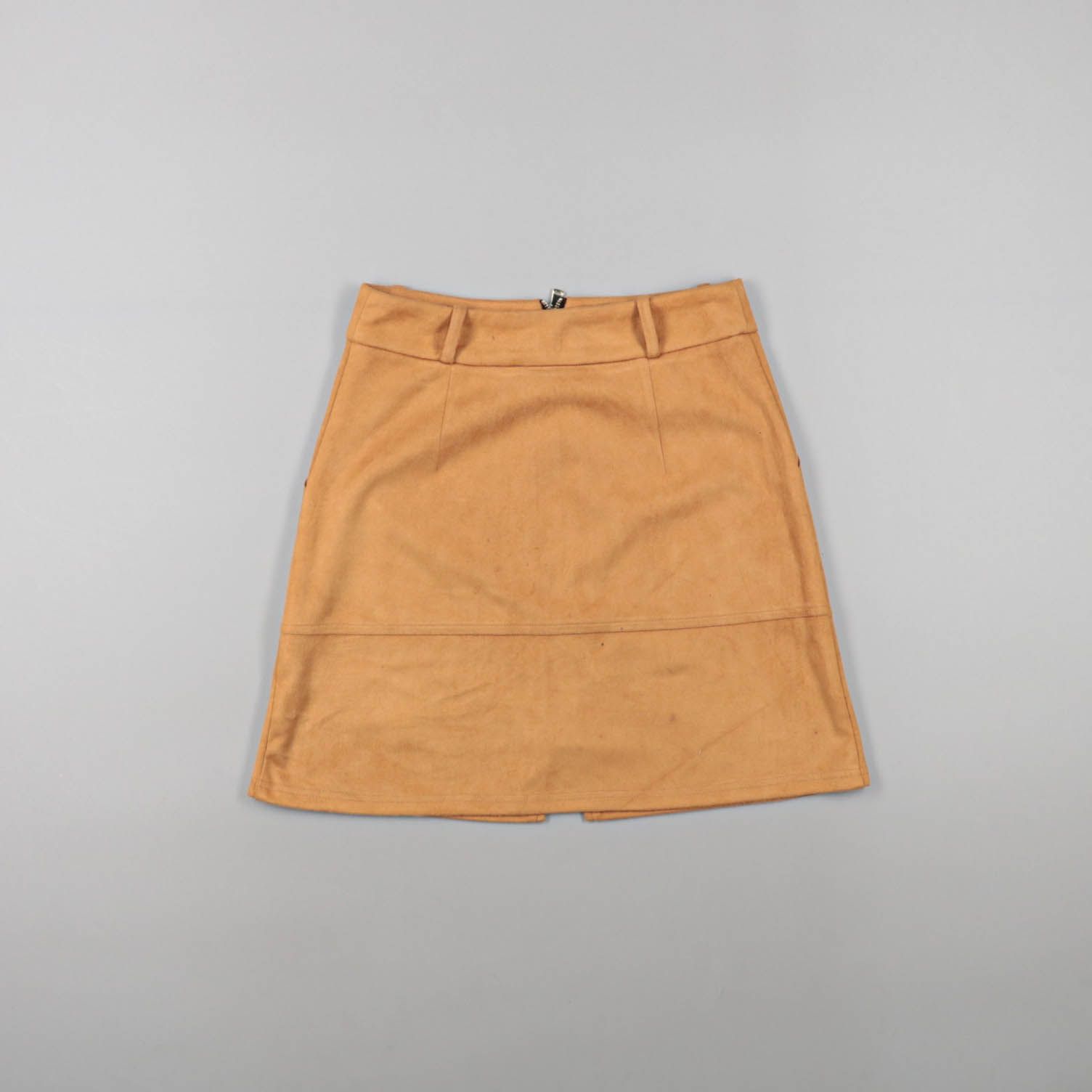 Юбка А-силуэта из материала под замшу, спереди длинная молния и накладные карманы. Подойдёт для повседневных образов в городе и на работу с базовыми рубашками и свитерами. Молния позволяет регулировать разрез снизу, а плотная ткань держит форму.