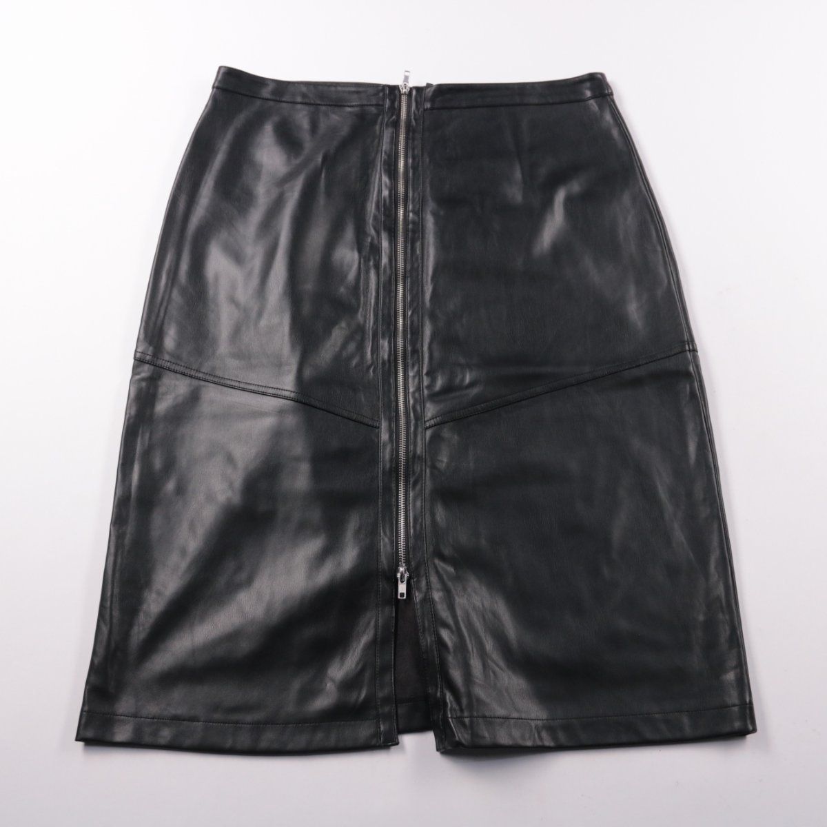 Юбка Primark Edit из искусственной кожи чёрного цвета, прямого кроя с высокой посадкой и центральной молнией. Подойдёт для повседневных и вечерних образов, молнией удобно регулировать разрез при ходьбе.