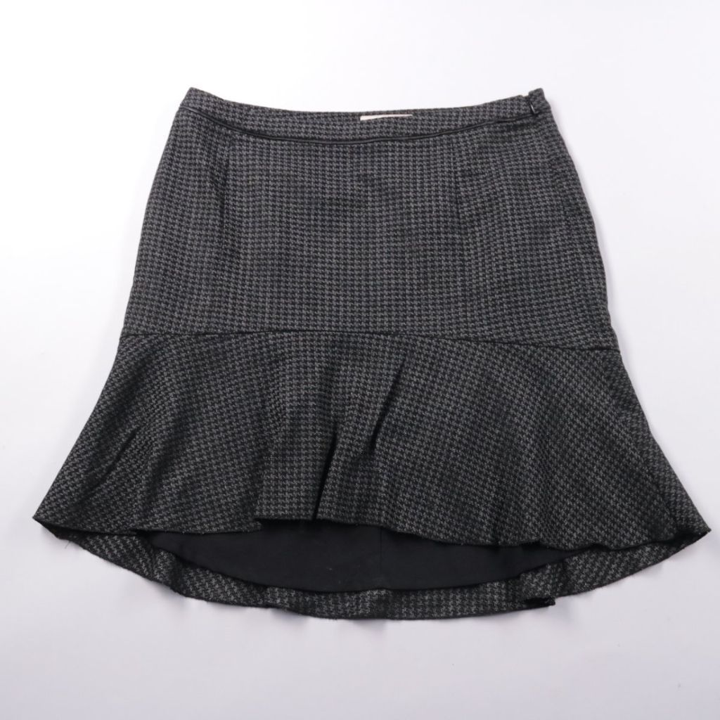 Женская юбка Esprit серого цвета в мелкий узор «гусиная лапка», с расклешённым воланом по низу. Подойдёт для повседневных и офисных образов в прохладную погоду. Ткань с добавлением эластана чуть тянется и комфортно садится по фигуре.